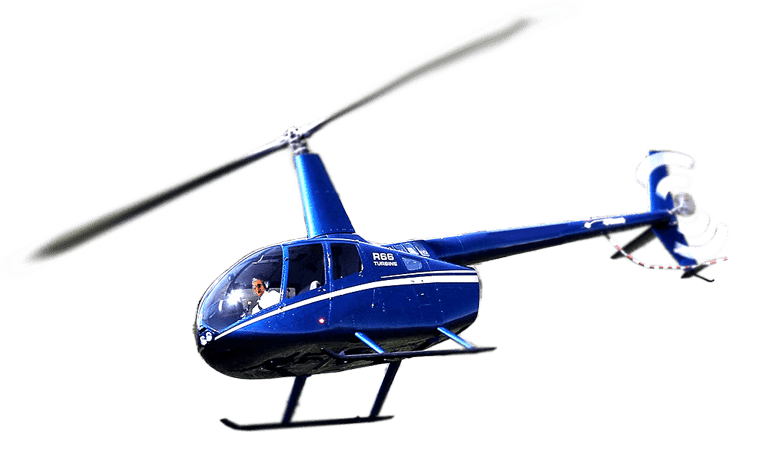 Os vôos serão realizados no Robinson R44, que é um helicóptero monomotor a pistão de pequeno porte projetado para transporte executivo, de passeio e de turismo, seguro e transporta até 03 passageiros.